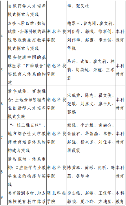 关于推荐申报2025年湖北省本科教学成果奖的公示