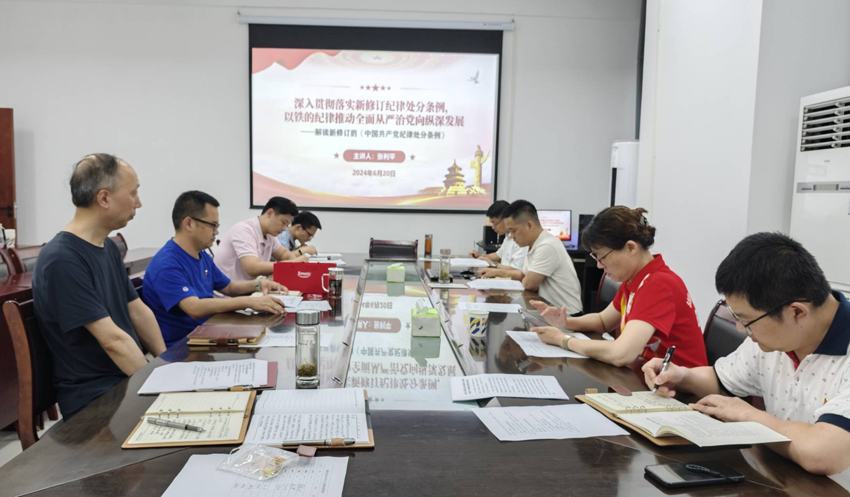 6月20日下午,教务党支部全体党员在教务处会议室召开6月份主题党日暨党纪学习教育活动,会议由党支部书记张利平主持,教务处处长鲍翠玉、支部全体党员、入党积极分子等参加会议。